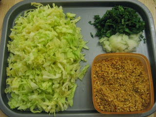 Dry roast the Jeera, Chillies and Peanuts (all seperately). After roasting the Peanuts ensure to cool and remove the thin pink skin, and grind all the three together in a coarse powder. Now heat the oil in a kadai and saute the Onions till they turn pink. Add the chopped cabbage saute for 5 minutes, add salt, water and cover cook it. After the cabbage is cooked add the coriander and mint and saute till the water dries up. Now add the coarse powder and mix thoroughly, the powder may look a little more but more the taste peanut better will the output. Now garnish with curry leaves and we are done. Enjoy with Roti or Rice.